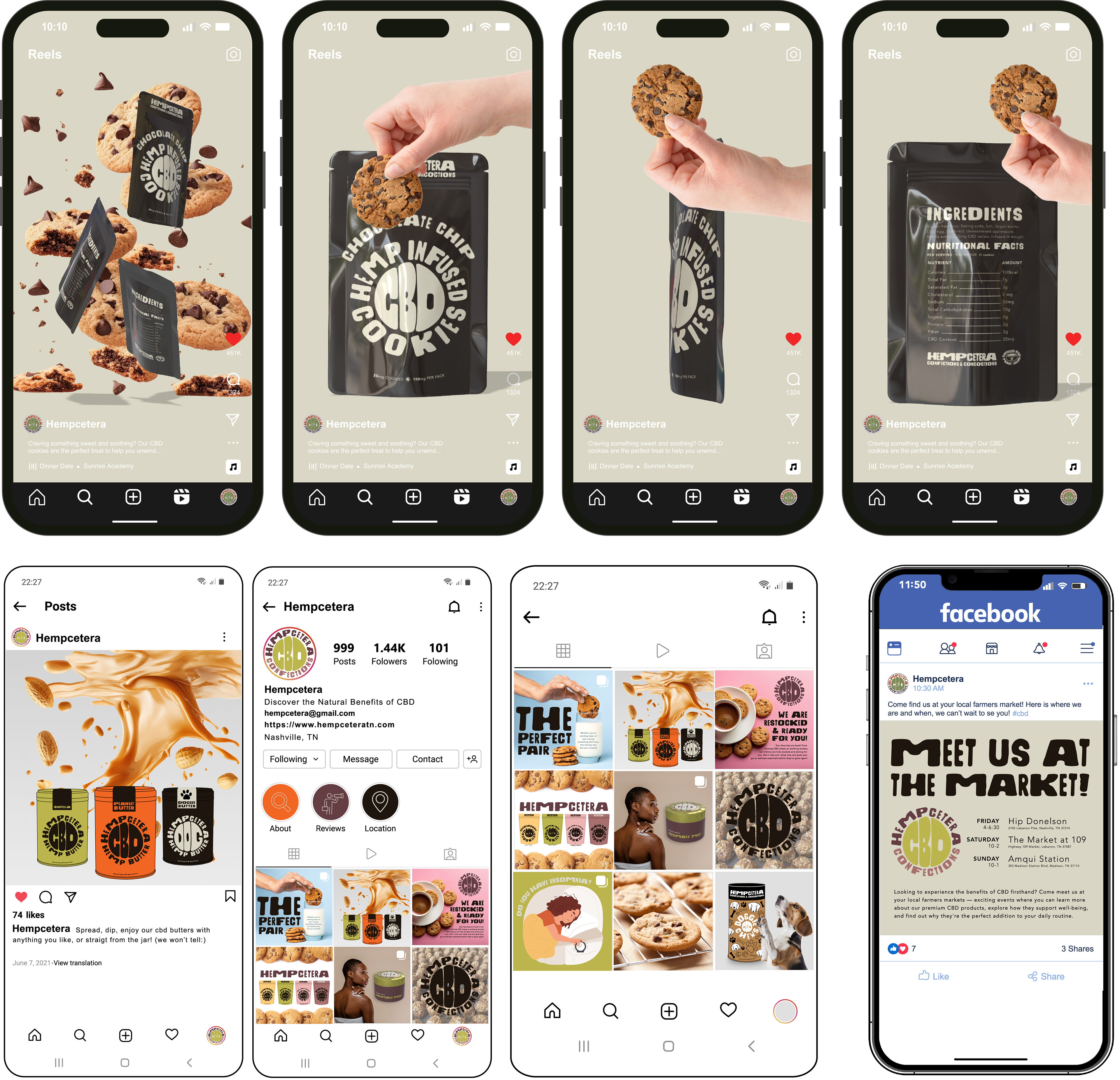I got the amazing opportunity to do a full rebranding of the lovely Bobbi Jo Hemmen’s local CBD business here in Nashville TN, Hempcetera. From the packaging to the social media and website, we elevated the brand and broadened the target audience with a fresh new style. I started with a new funky logo and color palette that reflects Bobbi’s awesome personality. And an organic typographic solution that gives the brand a minimalistic, but still fun feel! From the cookies to the lotion, every package was reimagined. Following strict legal guidelines for CBD products, but not too scary lookin right? Giving the brand a more vibrant, minimalist style helps give a more welcoming feel to new customers.